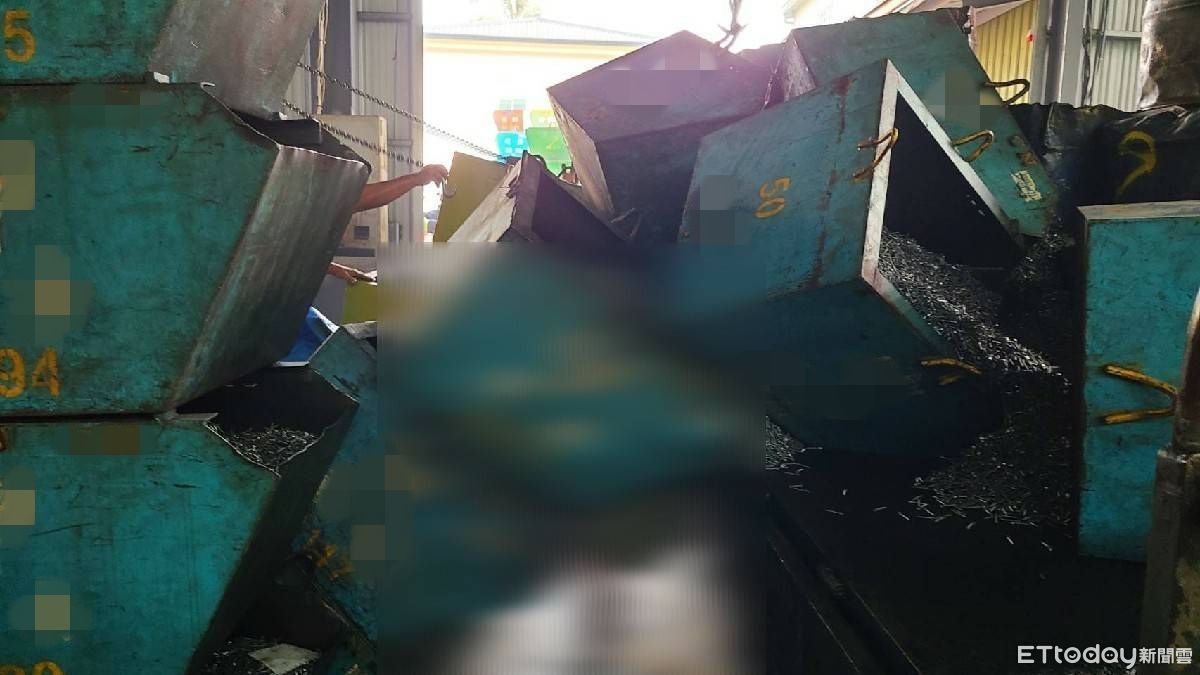 ▲300公斤螺絲桶從天墜落,重壓1名50歲男性工人。(圖/讀者提供,下同)