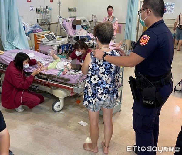 ▲員警當機立斷開警車載著阿嬤和男嬰衝醫院。(圖/中爏警分局提供)
