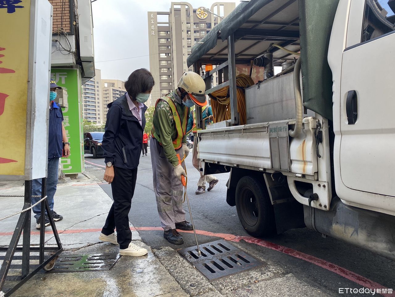 ▲市府防疫團隊執行水溝防治。(圖/記者許宥孺翻攝)