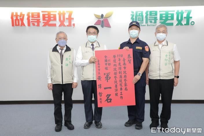 ▲2021年度台南市警察局對於酒駕積極取締防治的績效,深獲內政部警政署肯定,榮獲「防制酒後駕車工作」全國甲組(六都)第一名,台南市長黃偉哲肯定嘉許。(圖/記者林悅翻攝,下同)