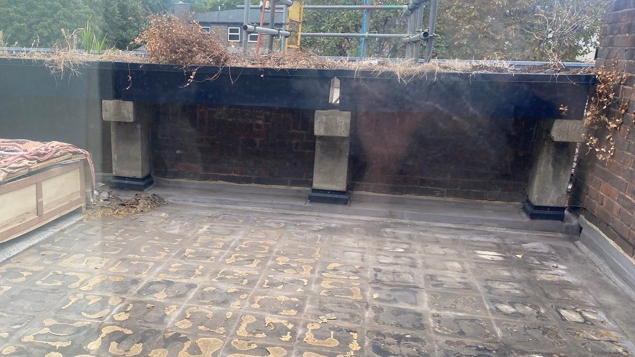 ▲英國女子彭妮回家發現陽台磁磚被拆。(圖/翻攝自推特)