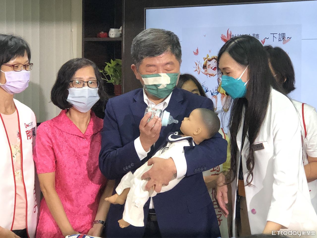 陳時中昨天上午參訪月嫂訓練班,由資深護理長親自教學,示範如何幫嬰兒洗澡、餵奶、換尿布,陳也坐在一旁仔細聆聽,不時與團隊發言人林楚茵小聲討論,但最後「抱小孩」的畫面被藍營質疑方式錯、臉臭等。
