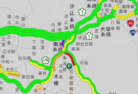 依據最新路況顯示,國1南下楊梅到新竹、彰化系統到彰化,國3南下環東到南港、三鶯到龍潭、高原到關西服務區,以及國5南下南港系統到石碇等路段,都已出現塞車,其中國3南下環東到南港紫爆,時速不到10公里。