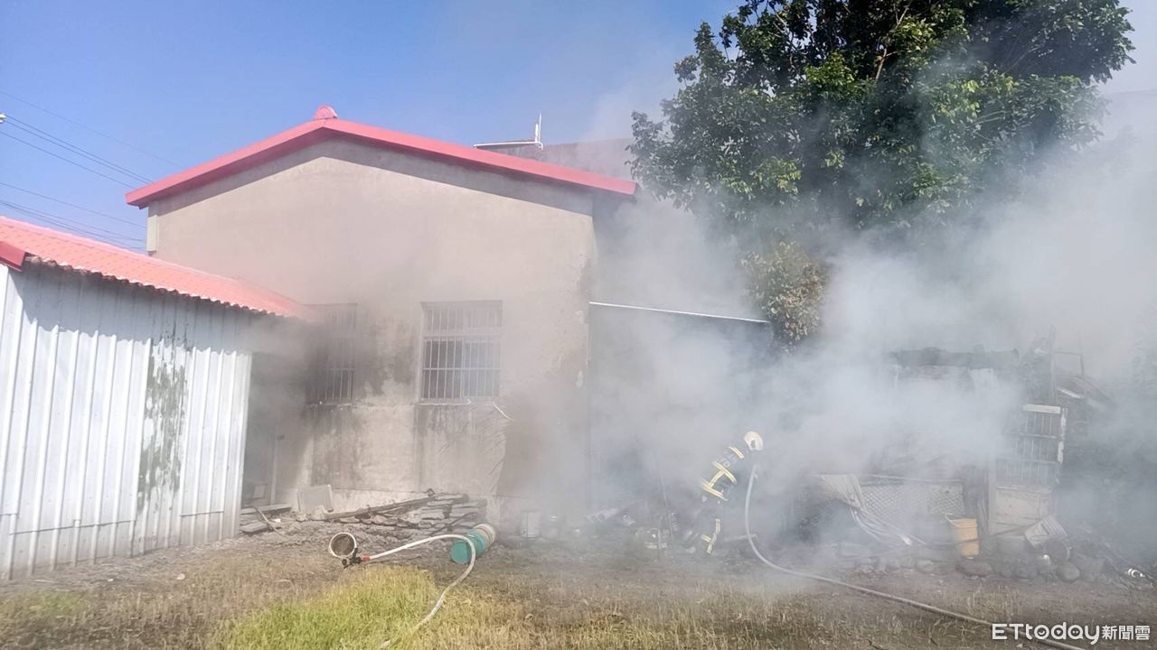 ▲▼大甲一家民宅的住警器,狂叫提醒屋內民眾順利逃出門,結果竟是雜草火警的濃煙飄進來。(圖/台中消防局提供,下同)