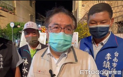 ▲台南市長黃偉哲前往火場關心,並呼籲民眾家中不要堆放物品阻礙逃生通道。(圖/記者林悅翻攝,下同)