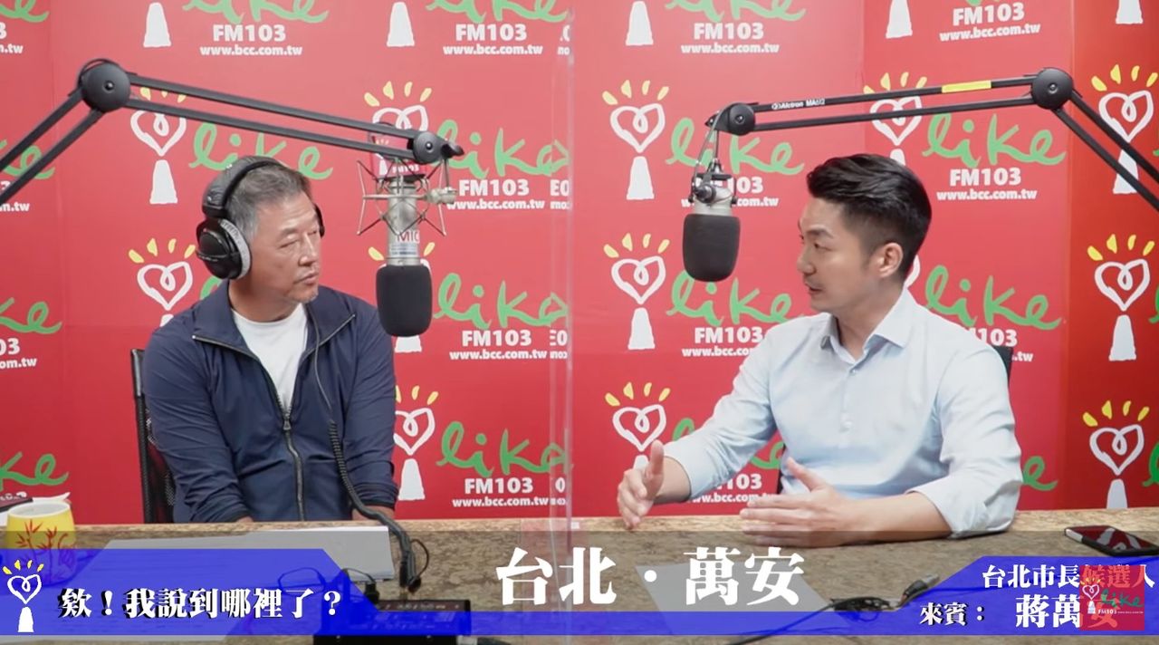▲主持人王偉忠、國民黨台北市長參選人蔣萬安。(圖/翻攝自中廣流行網 i like radio YouTube)