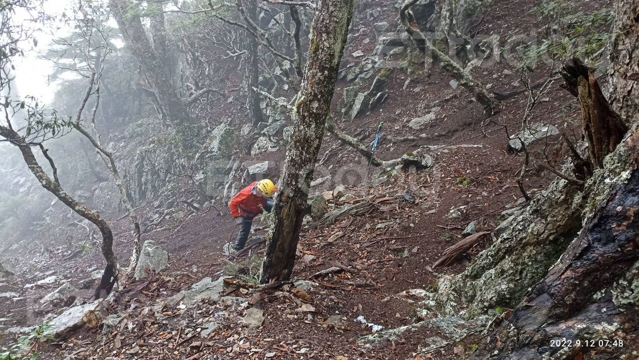 梨山分隊11日獲報後,派遣第一批消防人員前往搜救,在池有山莊往三叉營地3.5k處,下切河谷40公尺處有發現陳伯均的2支登山杖。目前第二批消防備妥200公尺繩索跟垂降設備,預計明早6點進行垂降作業。