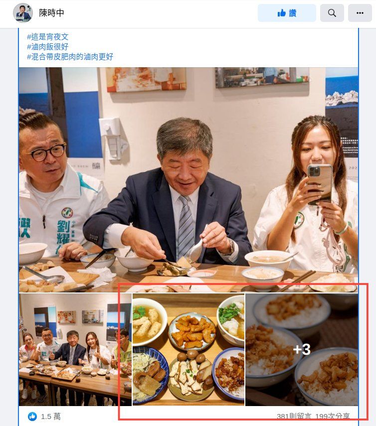 陳時中12日透過臉書撰寫「若你問我,什麼小吃富有台灣精神,滷肉飯絕對名列其中 」一文,提及位在萬華一家提供滷肉飯、羹湯等家常料理的店,並讚嘆每道都是令人難忘的家鄉味,不過其中一張食物照片使用百萬人氣部落客小可愛阿貴拍攝圖片,遭質疑「盜圖」。