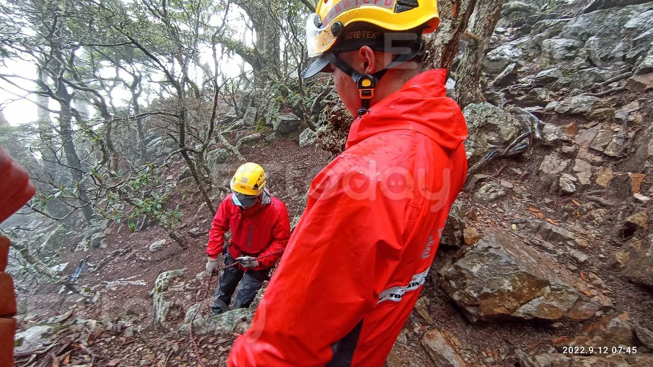 ▲搜救隊發現陳伯均的2支登山杖。(圖/記者哈勇嘎奧翻攝)
