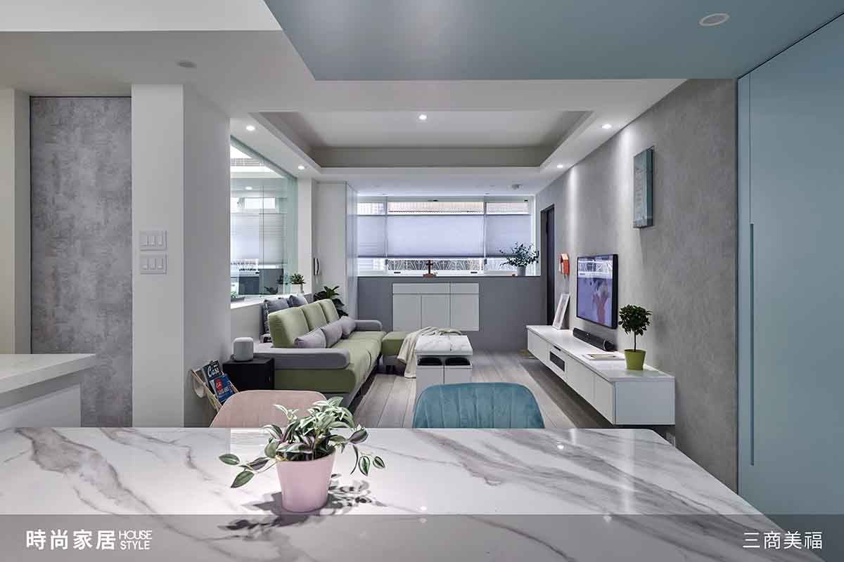 家,既能歡笑共樂,也可獨享自我,與親人同樂之時,亦能擁有偷閒放鬆的專屬角落;由三商美福板橋門市專案顧問Juei,為一家四口所改造的35年老屋,全室定調「共享」,以活動式推拉門與清玻取代門片實牆,通透開放又保有各自隱私,透過獨家720°VR全境擬真實境,業主可以真實體驗未來家居的悠遊自在,在輕甜繽紛與現代簡約的完美契合中,實現新生活期待。