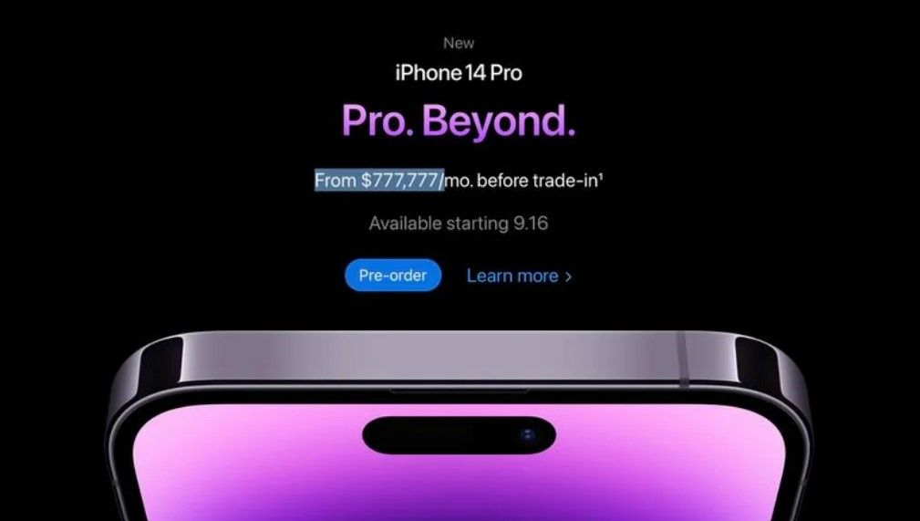 蘋果iPhone 14即將開賣,蘋果官網上也已經將詳細售價、規格都上線,不過外媒MacRumors就發現,蘋果在多個國家或區域標價錯誤,很多項蘋果產品的售價都變為「777,777 美元」(約新台幣2400萬元)。
