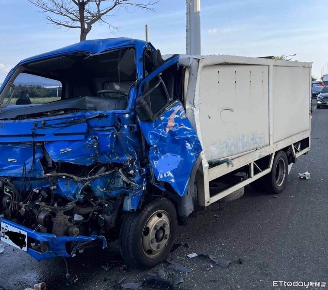 ▲▼台61線西濱橋下2貨車追撞,2車彈開20多公尺,3人頭破、腳骨折。(圖/民眾提供,下同)