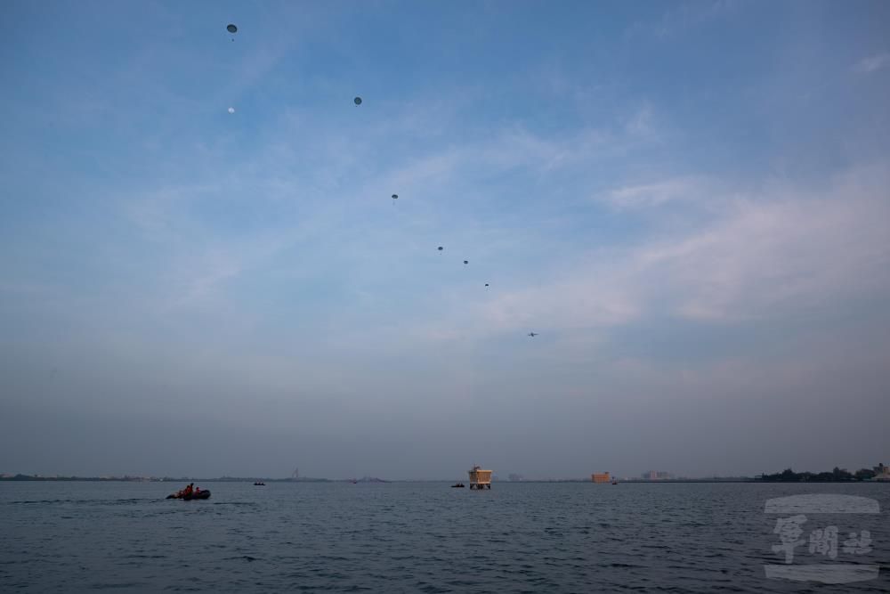 航特部表示,此次跳傘訓練區分三階段:第一階段實施地面複訓及水面緊急狀況處置,第二階段由教官複訓,確認航路及水域安全,第三階段由學員施訓;全程搭載空軍C-130H運輸機,使用T-10B傘具自1250呎高度跳出,強化官兵作戰能力,確保軍事任務達成。