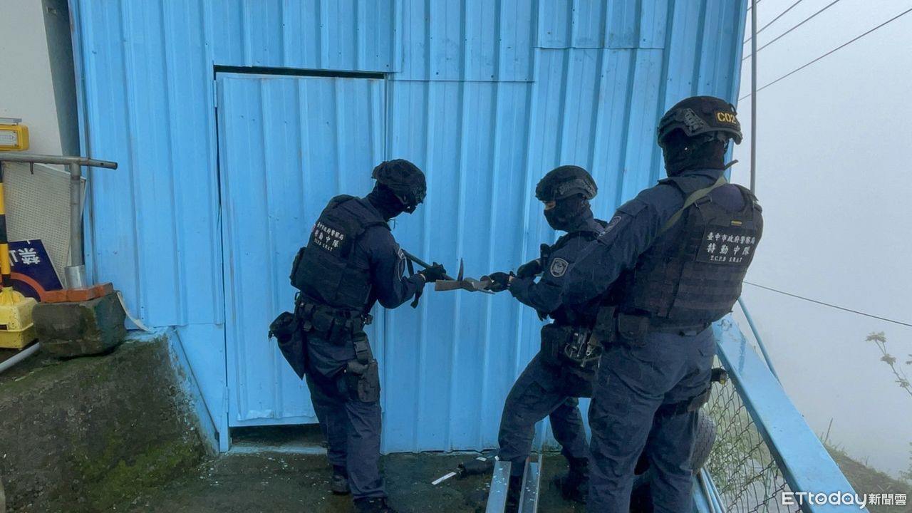 台中市刑大5月間獲報,美如人間仙境的南投縣武界部落,有人利用鐵皮屋囤放製毒原料,製作毒品咖啡包,該處極為偏僻,無門牌號碼,周邊遍佈監視器,如有陌生人車靠近,立即就會被犯嫌察覺,警方於是佯裝登山客,著登山鞋、攜帶登山杖、帳篷,跋山涉水潛入山區,在又起霧又下雨,氣溫15度之下搭帳蒐證,待了2天1夜後,蒐齊事證,出動特勤中隊守住所有出口並攻堅破門。