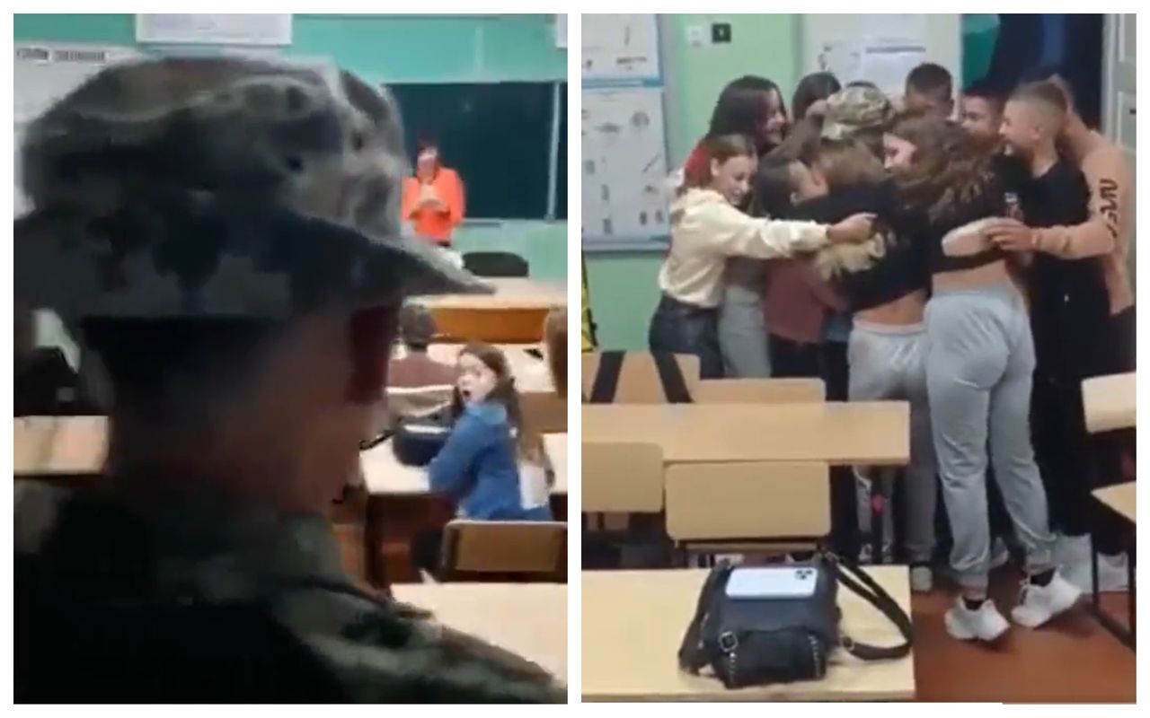 ▲烏克蘭教師去前線當兵,悄悄回到班上給學生們大驚喜。(圖/翻攝自twitter/@InnaSovsun)