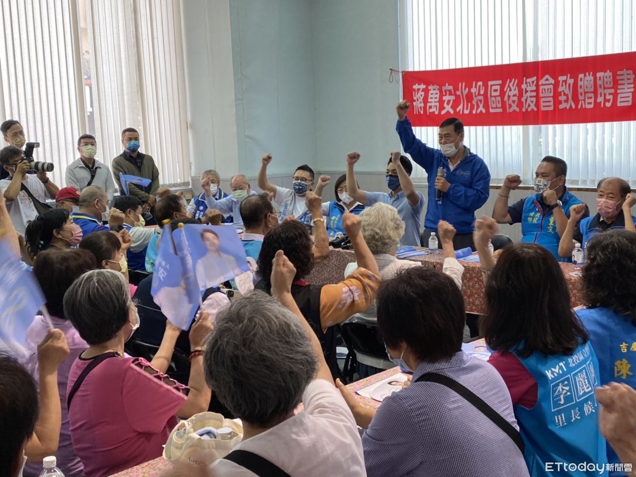 ▲國民黨台北市長參選人蔣萬安17日出席北投區後援會授證大會。(圖/記者崔至雲攝)