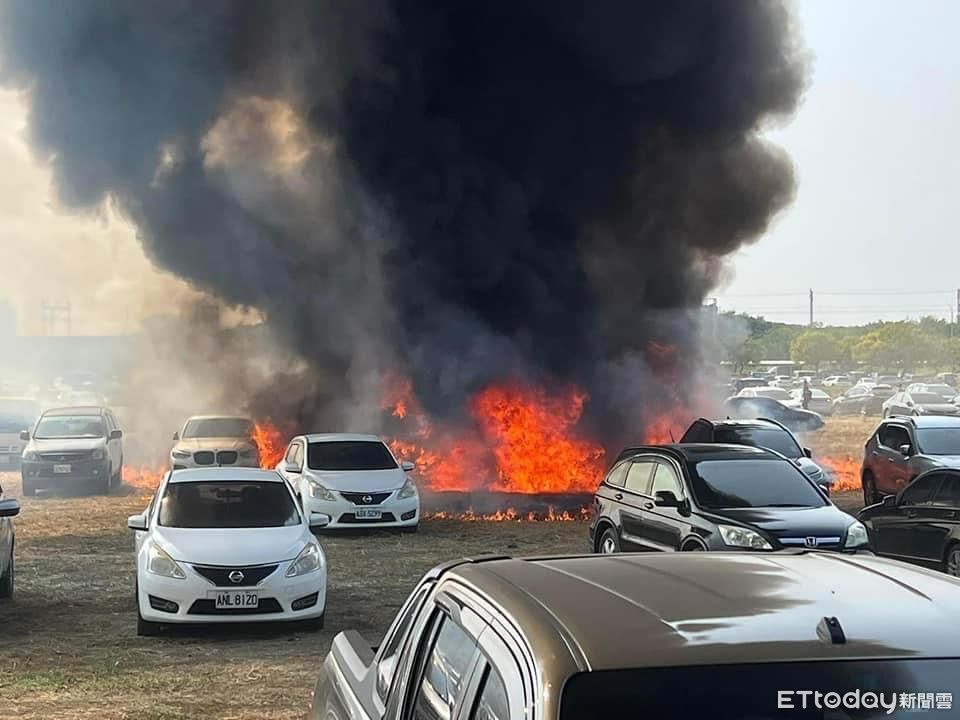 雲林國際農業機械暨資材展在虎尾高鐵特定區舉行為期3天的展覽,今(18)日下午14時23分傳出疑似有民眾亂丟菸蒂導致展場附近草皮燃燒,波及停車場內多輛汽車,黑色濃煙直竄天際,警消獲報後緊急出動滅火中,所幸沒有人傷亡,總計共延燒24台自小客車、1台貨車,詳細起火原因還有待釐清。