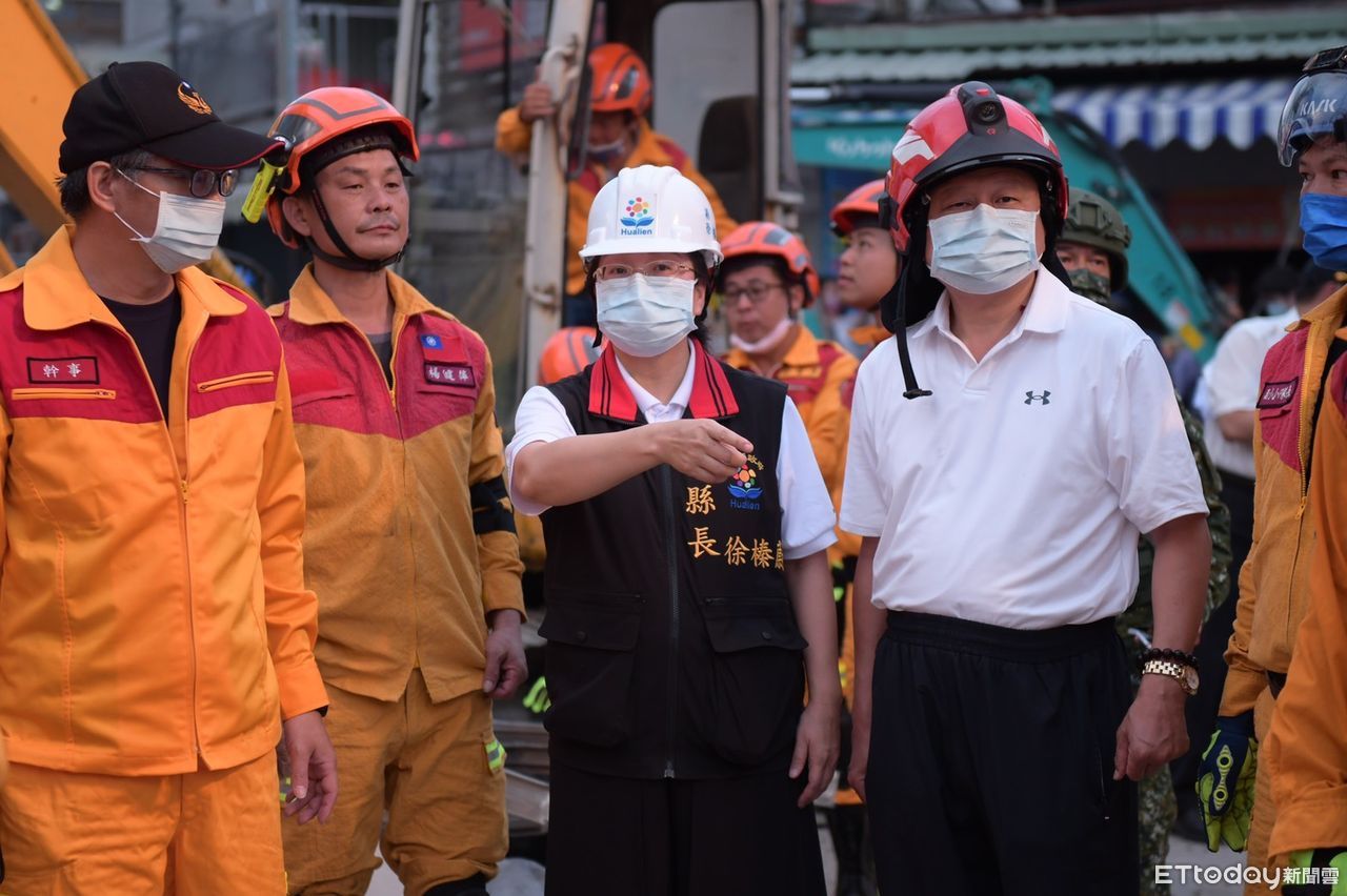 ▲花蓮縣長徐榛蔚與立委傳崐萁赴現場關切救援進度。