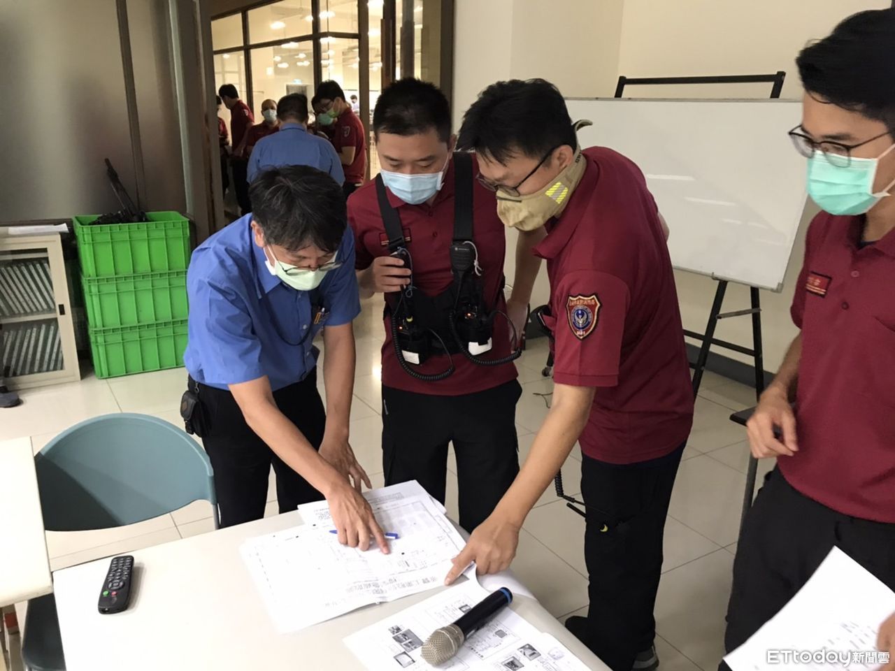 ▲台南市消防局第五大隊在帝寶工業研發中心辦理相關教育訓練,將該工廠參與應變員工進行任務分組,指導其員工進行模擬地震後發生火災的廠內應變兵棋推演。(圖/記者林悅翻攝,下同)