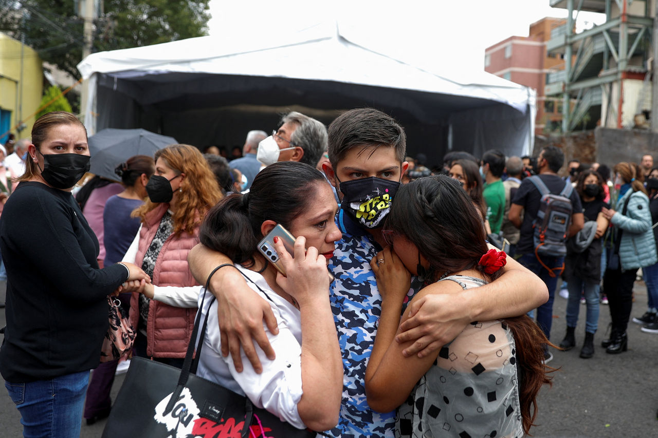 ▲墨西哥強震,民眾嚇得與親友緊抱。(圖/路透)