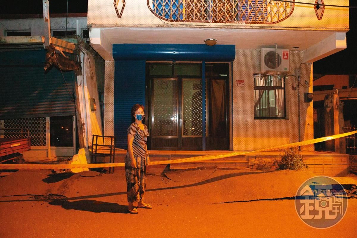 ▲經歷強震的民眾站在封鎖線旁,顯得無奈又無助。