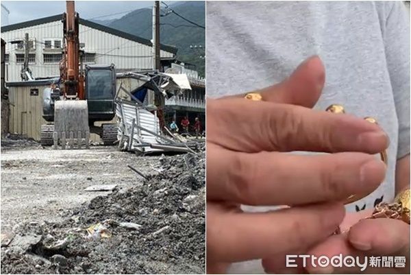 但經歷一早的挖找,只有找到幾條黃金飾品,大部分的黃金、飾品仍然被埋在廢墟中。屋主太太無奈表示,縣府已派人來協調,表示必須快點進行拆除作業,否則會耽誤工程進行,他們一家也不想對工程人員造成困擾,因此只能加快腳步尋找,「能找回多少算多少」。