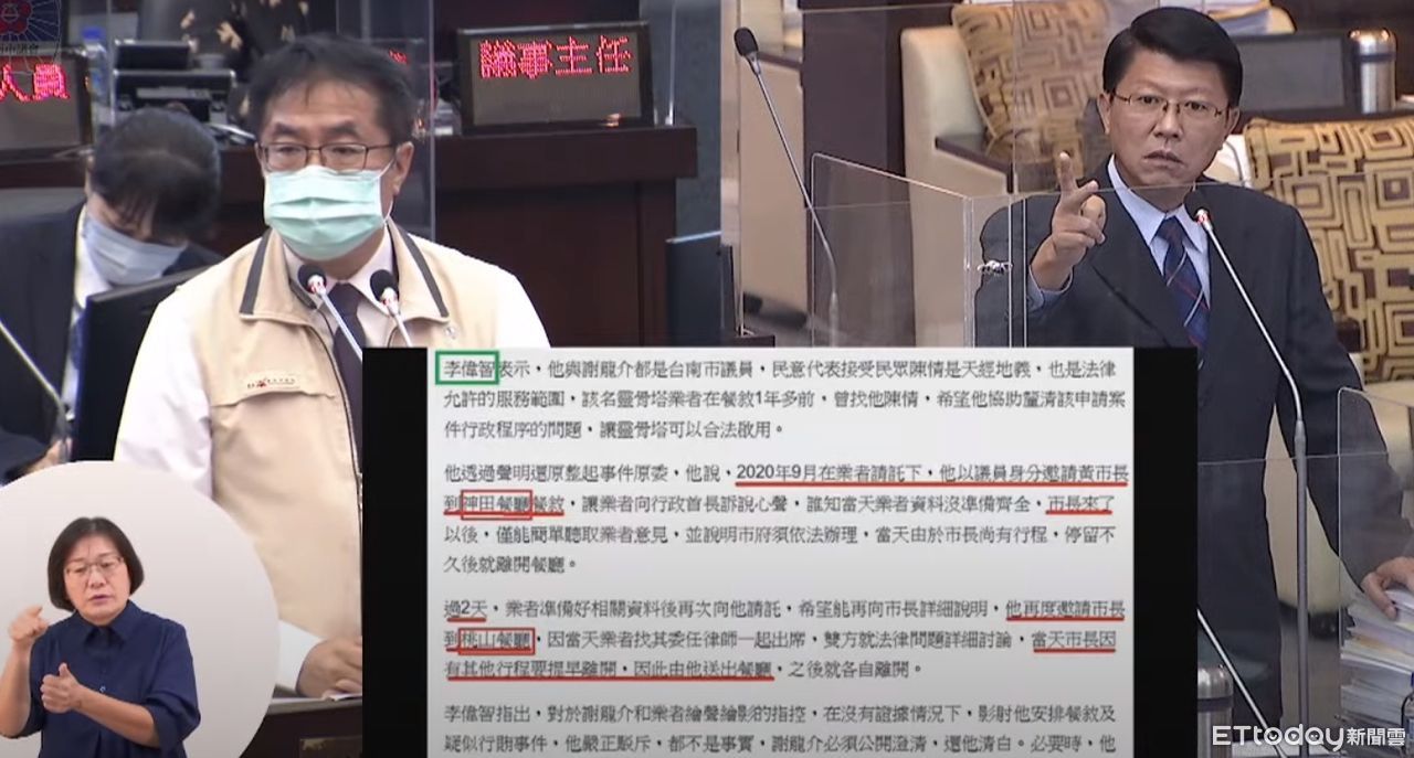 ▲台南市議員謝龍介在議員任內最後一次質詢火力全開,強力抨擊黃偉哲靈骨塔案涉及官商勾結、市府誤導文旦銷售等問題。(圖/記者林悅翻攝,下同)