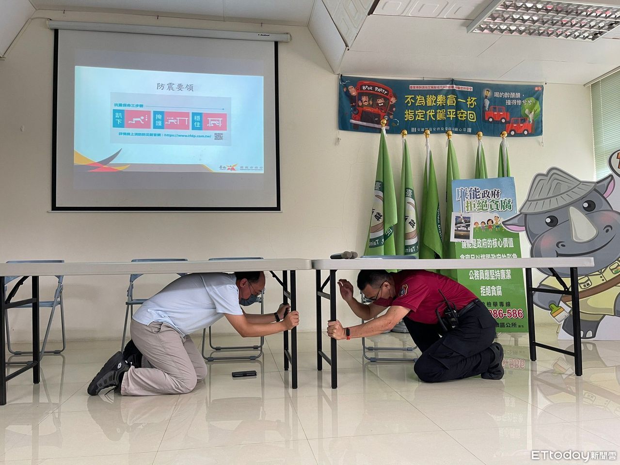 另一方面,防震知識方面,強調遇到地震,並非第一時間慌亂逃出戶外,而是優先保護自己的頭頸部,深化抗震保命3步驟-「趴下、掩護、穩住」,平時備妥「緊急避難包」。再者,強震過後,可能造成建築物倒塌,民生管線破損引起火災,教導火災初期如何火使用滅火器。
