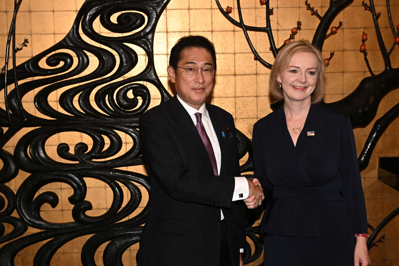 ▲英國首相特拉斯與日本首相岸田文雄會面。(圖/路透)