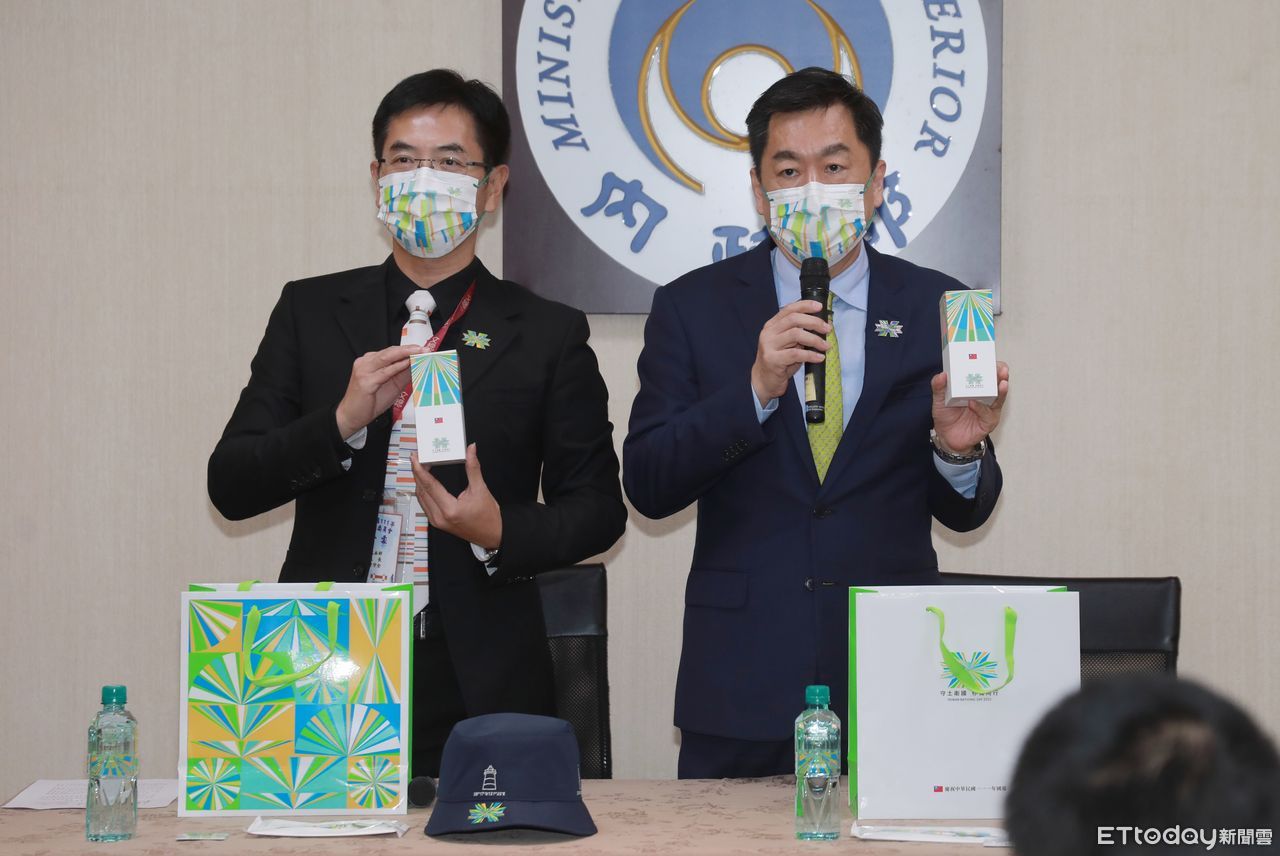111年國慶大會禮賓紀念品21日開箱。慶籌會秘書長陳宗彥表示,今年國慶禮賓袋除了必備的貴賓帽及徽章外,特別推出限量台灣製保溫杯及國慶限定口罩,提供給每位受邀參加的貴賓。另將於「中華民國讚國慶」臉書舉辦抽獎活動,讓沒能出席國慶大會的民眾,也有機會獲得國慶紀念品,一同慶祝中華民國生日快樂。