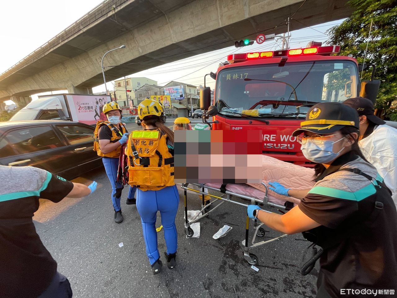 彰化縣一名男子今下午3點多被發現墜落二水鄉一條排水大圳,一路從八堡一圳流經田中、社頭,最後在員林救起,大約漂流近13公里,已無生命跡象,消防人員仍持續CPR急救,並送往員榮醫院搶救。
