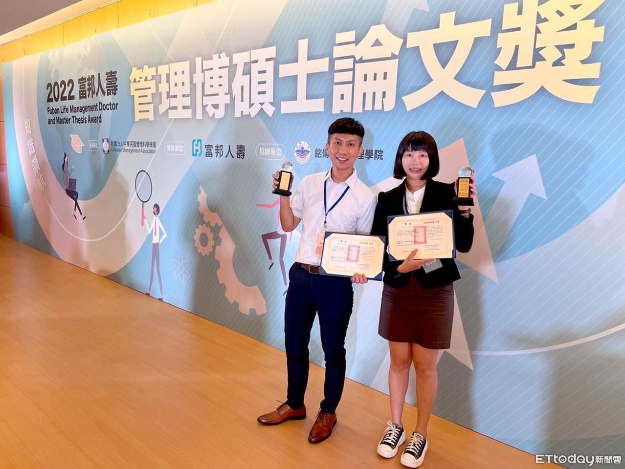 台東大學文休系暑期碩士班三年級的楊幸娟同學,參加「富邦人壽管理博碩士論文獎」 EMBA組別競賽,在眾多競爭者中脫穎而出,獲得最大獎項「特優」殊榮。頒獎典禮當天楊幸娟與指導教授許立群老師共同出席領獎,展現台東大學在管理實務應用上的重要學術成果。