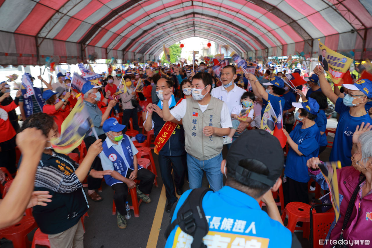 鍾東錦說:「雖然民進黨縣長提名人有來自總統和副總統的加持,加上目前情勢是其他3個候選人,攻擊、抹黑他一個人,但還好自己有苗栗鄉親的支持,因此根本不會害怕,反而越戰越勇、越戰越有信心。」