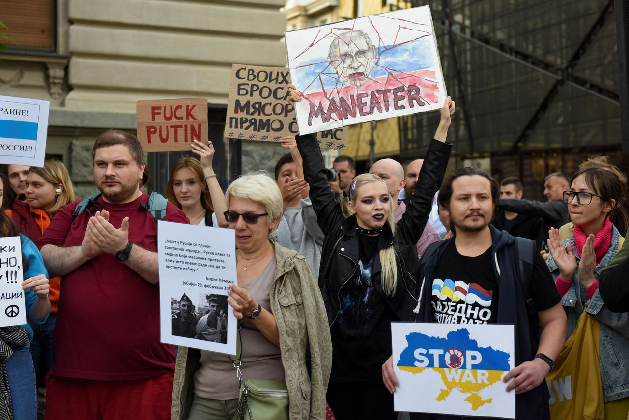 ▲多地爆發反對俄羅斯政府局部動員令的抗議。(圖/路透)