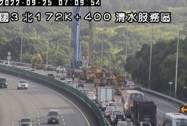 高速公路局中區養護工程分局表示,國道3號北向171.7k、清水路段於今天(25日)清晨3時57分,一輛砂石車撞護欄翻落邊坡事故,目前暫時全線封閉拖吊中,請用路人由彰化系統改道國道1號,或由沙鹿交流道改道行駛。
