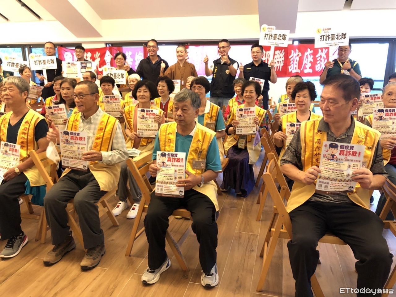 ▲台北市文山第一警分局在國際佛光會中華總會泰山區督導會長聯誼活動中進行防詐宣導 。(圖/佛光山泰山禪淨中心提供,下同)