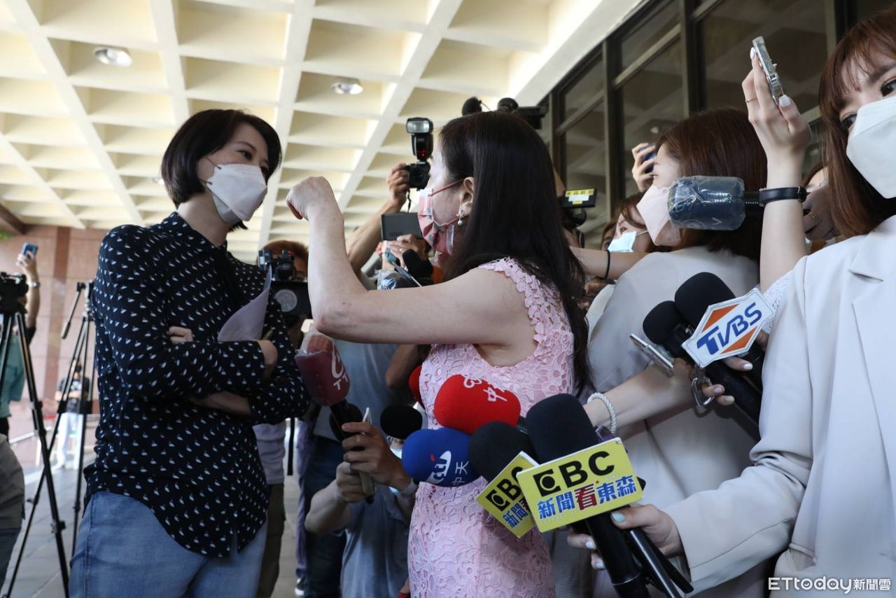 ▲周玉蔻王鴻威北檢起衝突。(圖/記者屠惠剛攝,下同)