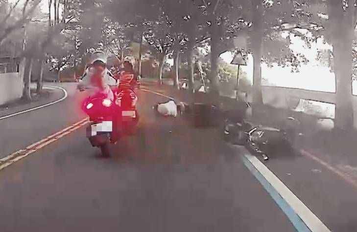 彰化警分局交通分隊初步調查,這起車禍事故發生在25日下午3點多,正值周末假日,詹男騎車行經彰化139縣道8.4K處,疑似為了閃避流浪狗,導致機車失控滑向對向車道與林男及歐男、徐女造成擦撞,機車也毀損,詹男及林男擦挫傷送醫。