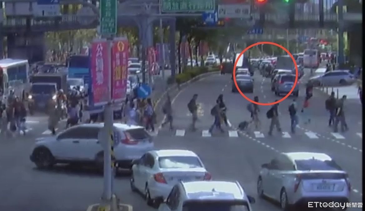 ▲新北市汐止區發生4台機車(紅圈)煞車不及,造成連環追撞的事故。(圖/記者邱中岳翻攝)