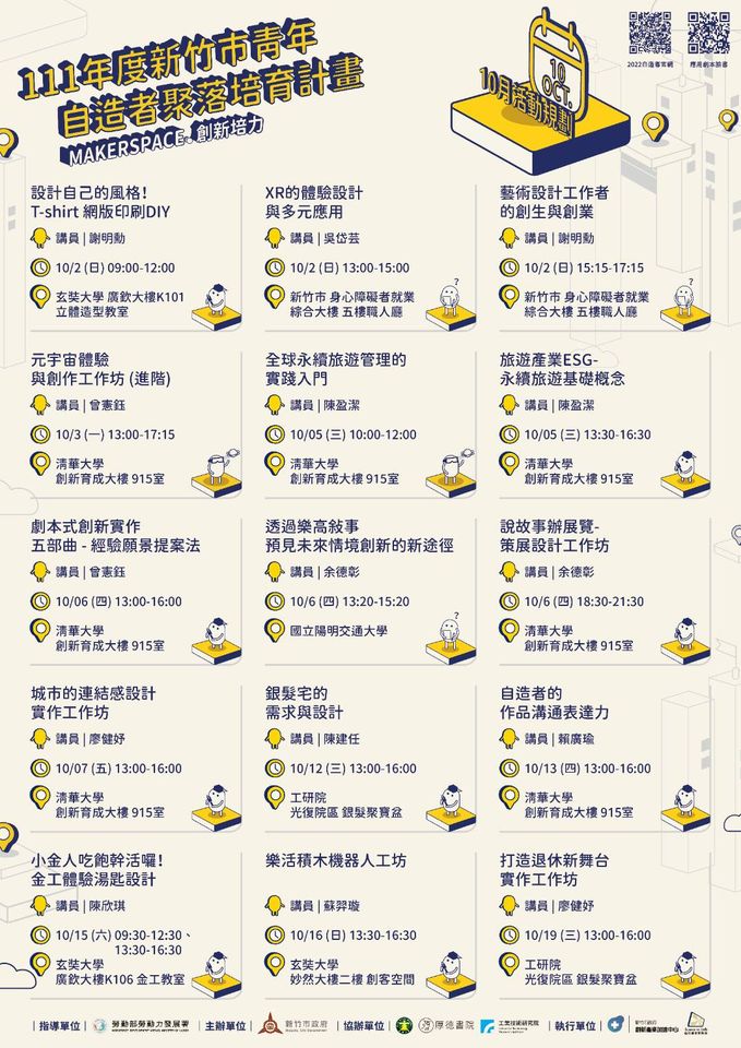 ▲111年度自造者聚落培育10月份課程總表。(圖/新竹市政府提供)