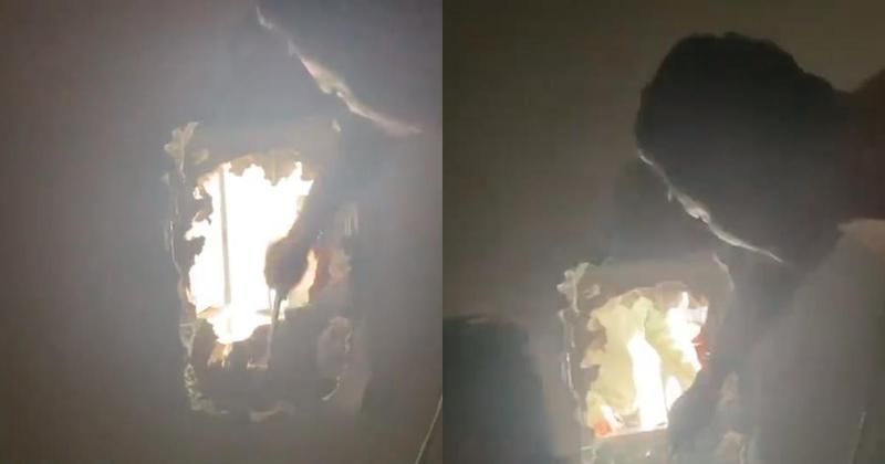 李女指出,他們家有3個捲門,2個是手拉的,而他們住的地方是用電動捲門且沒有窗戶,當天老公就在牆上挖了個直徑50公分的洞,因為牆是石膏板,所以只花幾分鐘就成功了,未來會做個推拉門。