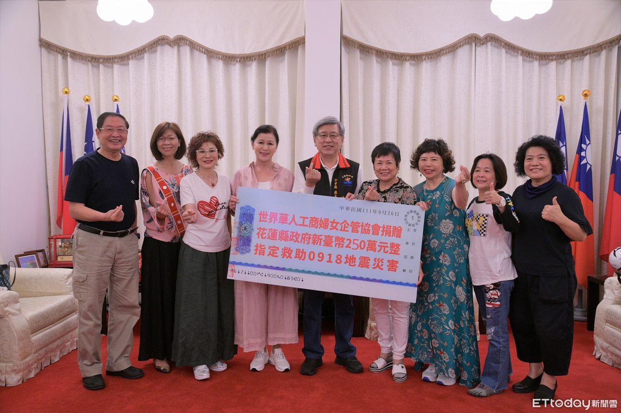 ▲▼世界華人工商婦女企管協會拜會花蓮縣府,捐款250萬救助918震災災民。(圖/花蓮縣政府提供,下同)