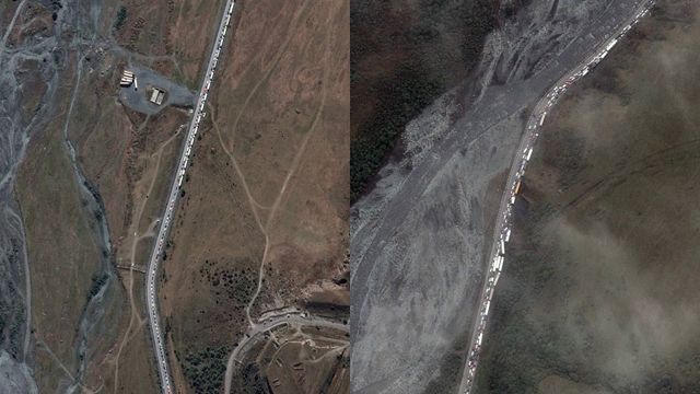 根據《每日星報》,美國太空技術公司「馬薩爾科技」(Maxar Technologies)的衛星圖像顯示,俄羅斯與喬治亞交界的Verkhny Lars檢查哨站擠滿了大量排隊出關的車輛,等候車陣至少長達10英里,以作為對普丁徵召令的回應。統計顯示,自從克里姆林宮21日發表談話後,多達11.5萬名俄羅斯人逃離,飛往亞美尼亞、土耳其、喬治亞的航班售罄,民眾開始透過陸路、甚至直接步行前往邊境。