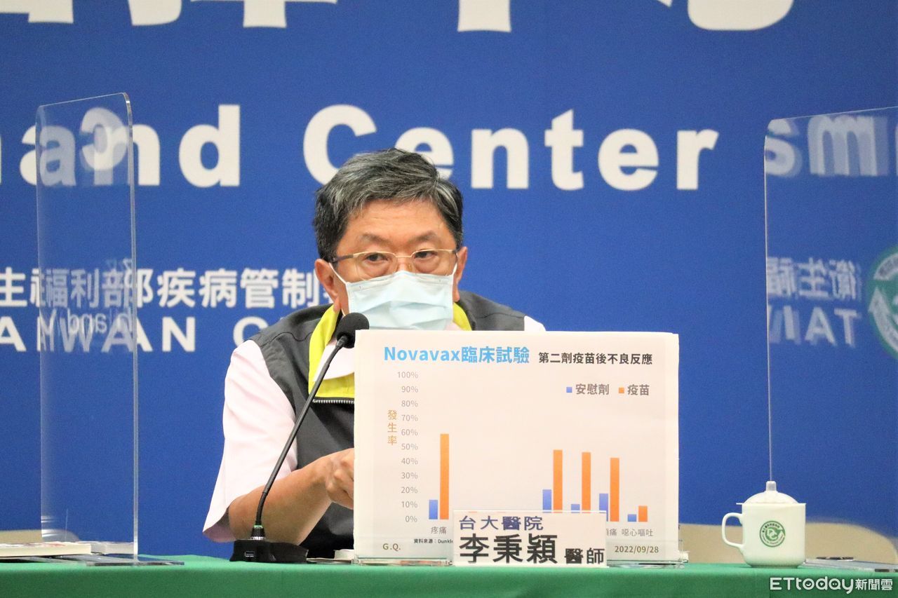 ▲指揮中心9/28說明Novavax臨床試驗第二劑接種後不良反應。(圖/指揮中心提供)