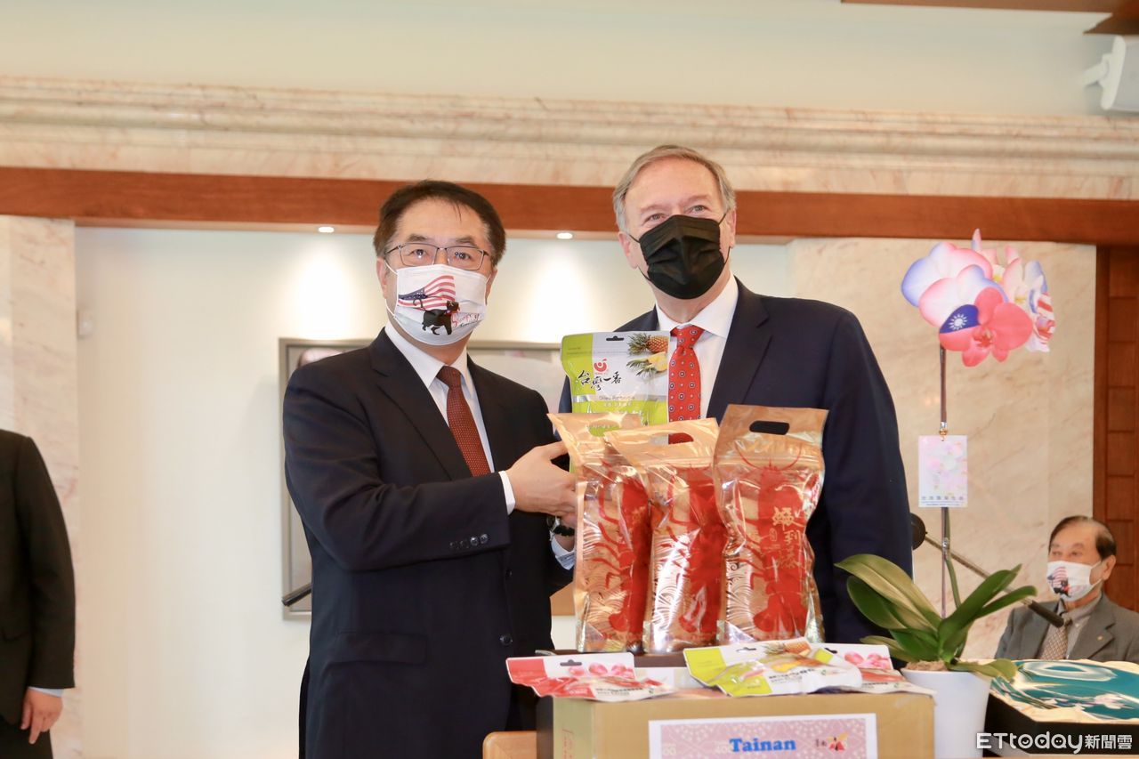 最友台的美國前國務卿蓬佩奧(Michael R. Pompeo)日前訪台,並於28日蒞訪台南,台南市長黃偉哲、立委王定宇、前外交部長陳唐山等人與他會面,黃偉哲市長送上噴印台美國旗的蘭花、蘭花瓷盤、優質果乾以及美味蝦餅等在地傲人特色禮物,以最受人稱道的台南人熱情,歡迎長期鼎力支持台灣的國際友人。