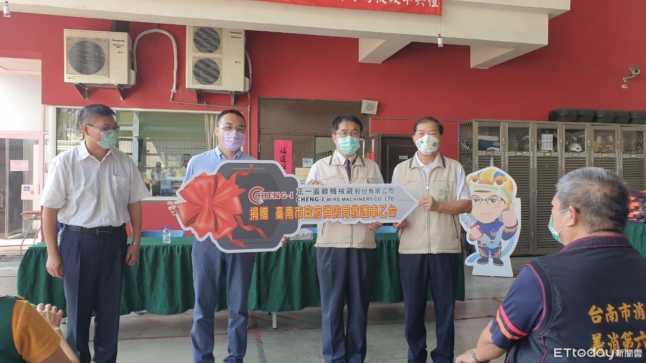 ▲正一直線機械廠捐贈台南市消防局第六救災救護大隊安南消防分隊救護車1輛,由黃偉哲市長代表受贈啟用。(圖/記者林悅翻攝,下同)