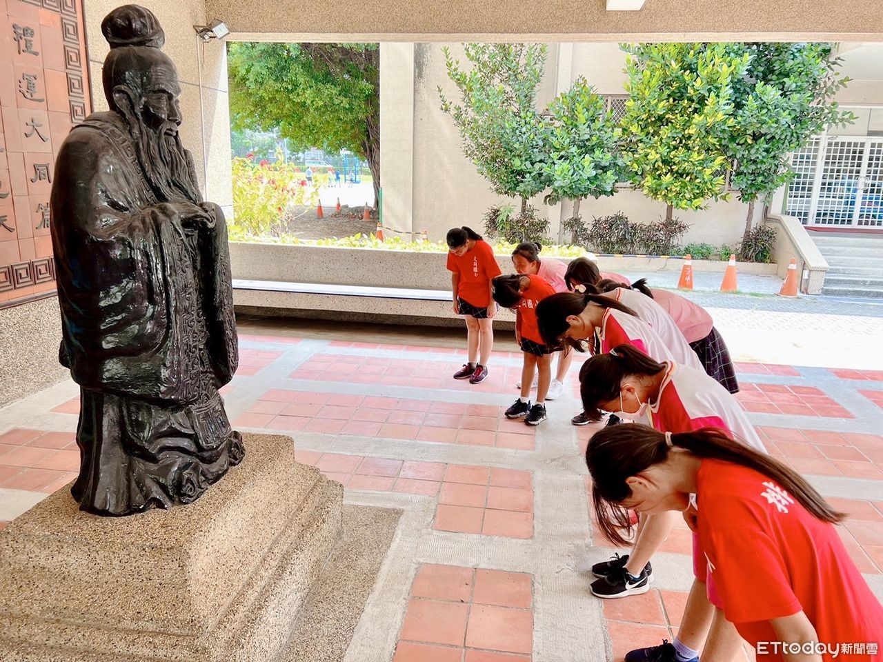 ▲嘉義市大同國小敬師月向孔子敬禮 。(圖/大同國小提供)