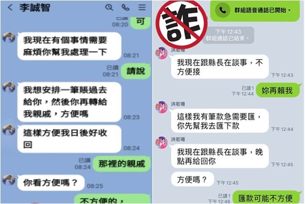 另外金城鎮及金湖鎮兩鎮長也收到頭像、名字遭盜用,向轄內里長借錢的情形。金城鎮鎮長李誠智表示,名字及照片遭冒用借款部分,已向警方完成報案程序,並於臉書公開聲明其不會用LINE或其他簡訊要求幫忙匯款,呼籲鄉親多求證可避免受騙。