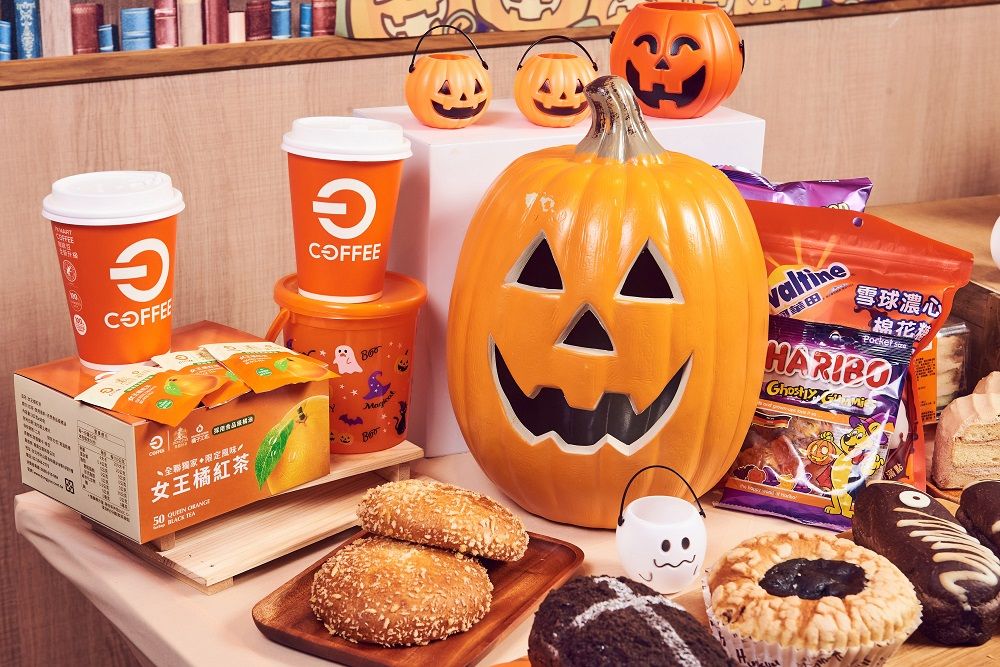 全聯福利中心為迎接萬聖節,網羅生鮮、咖哩、糖果、零食、甜點麵包等,祭出限定限量款以及相關優惠,此外OFF COFFEE也搭上節慶,即日起至10/27 期間限定推出「OFF COFFEE 女王橘紅茶咖啡」創新風味,無痛升級免加價;而萬聖節10/29在天母5間門市、10/31當天全台門市也將免費送糖果。