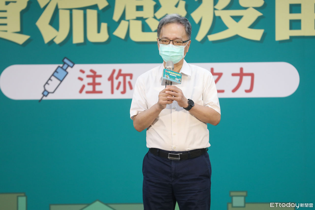 ▲衛福部長薛瑞元出席公費流感疫苗開打記者會。(圖/記者林敬旻攝)
